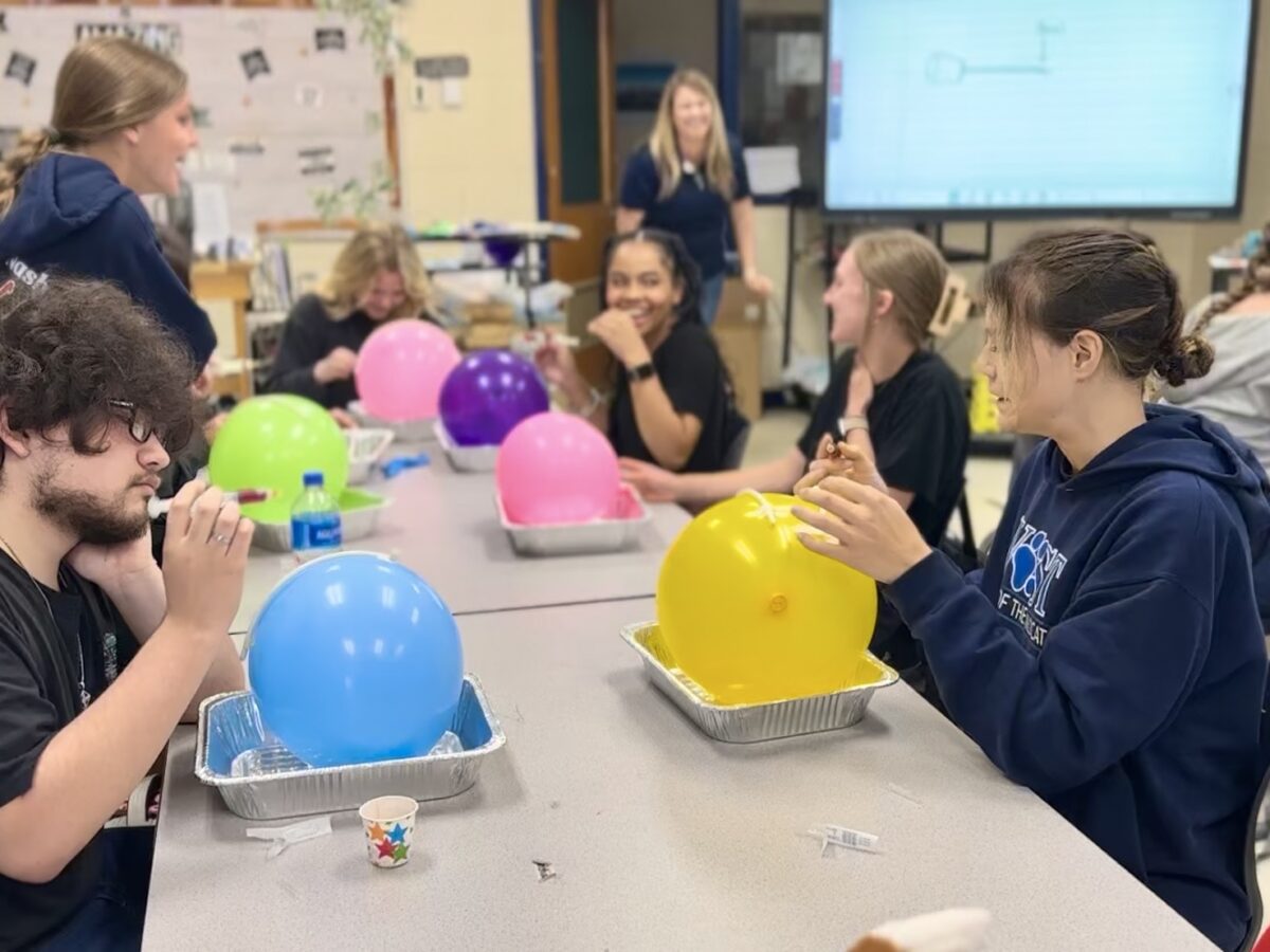 Students started off using balloons to simulate veins before using pig ears — a common substitute for live animal training — to practice their techniques.