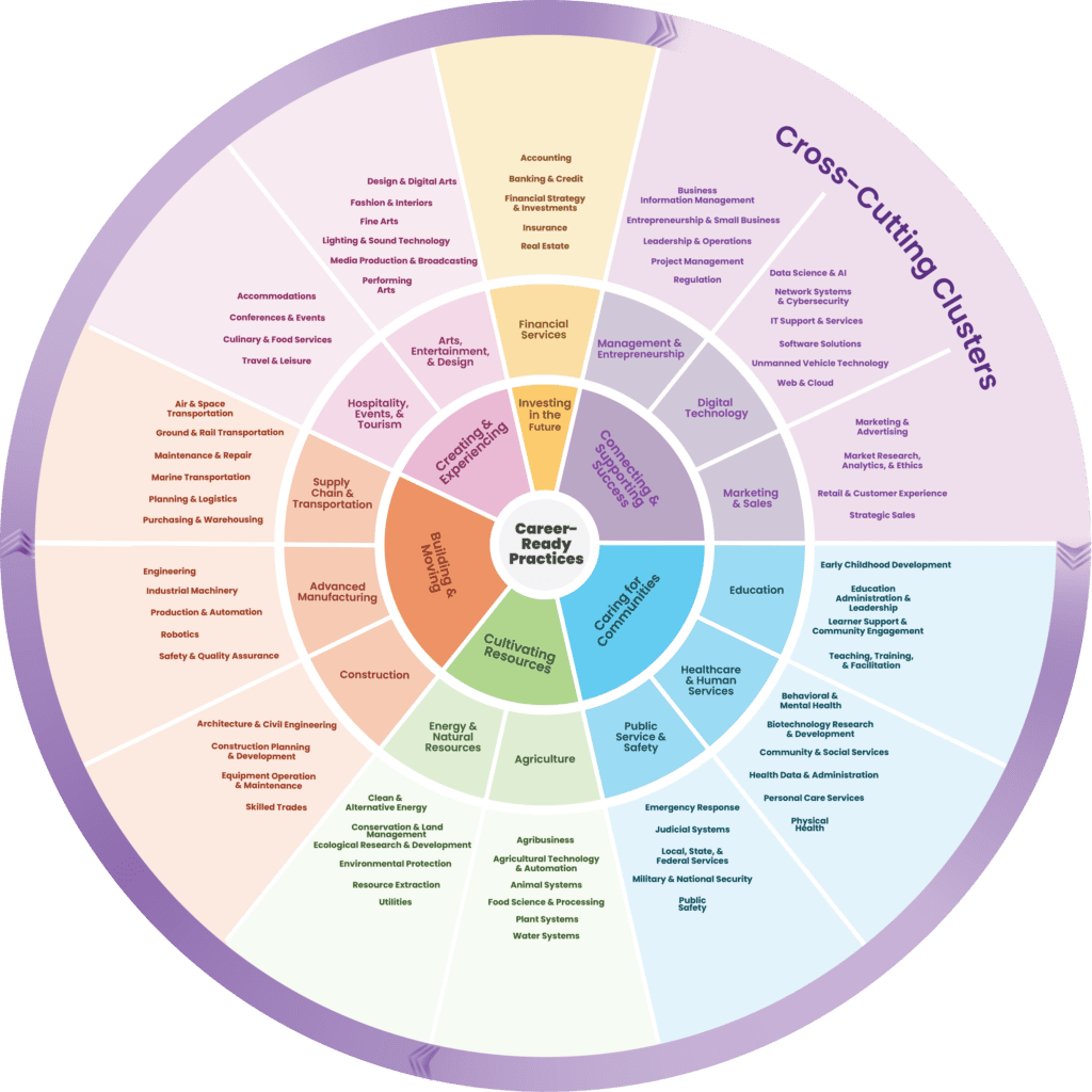 A more modernized career clusters framework emerged in 2024, consisting of 14 clusters and 72 pathways.