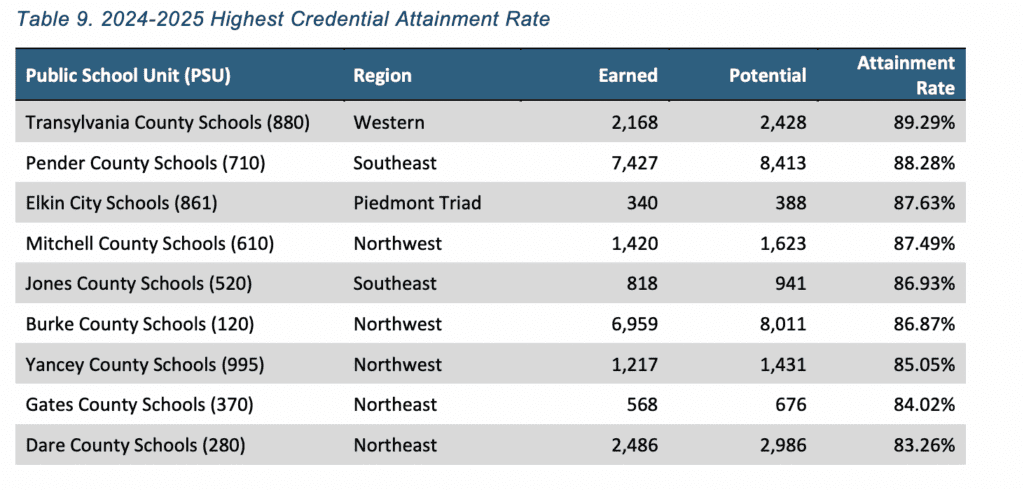 Equity and access challenges also persist. In North Carolina, the state’s 2024-25 CTE credential attainment report showed gaps between CTE enrollment and credentials earned among several demographic groups.