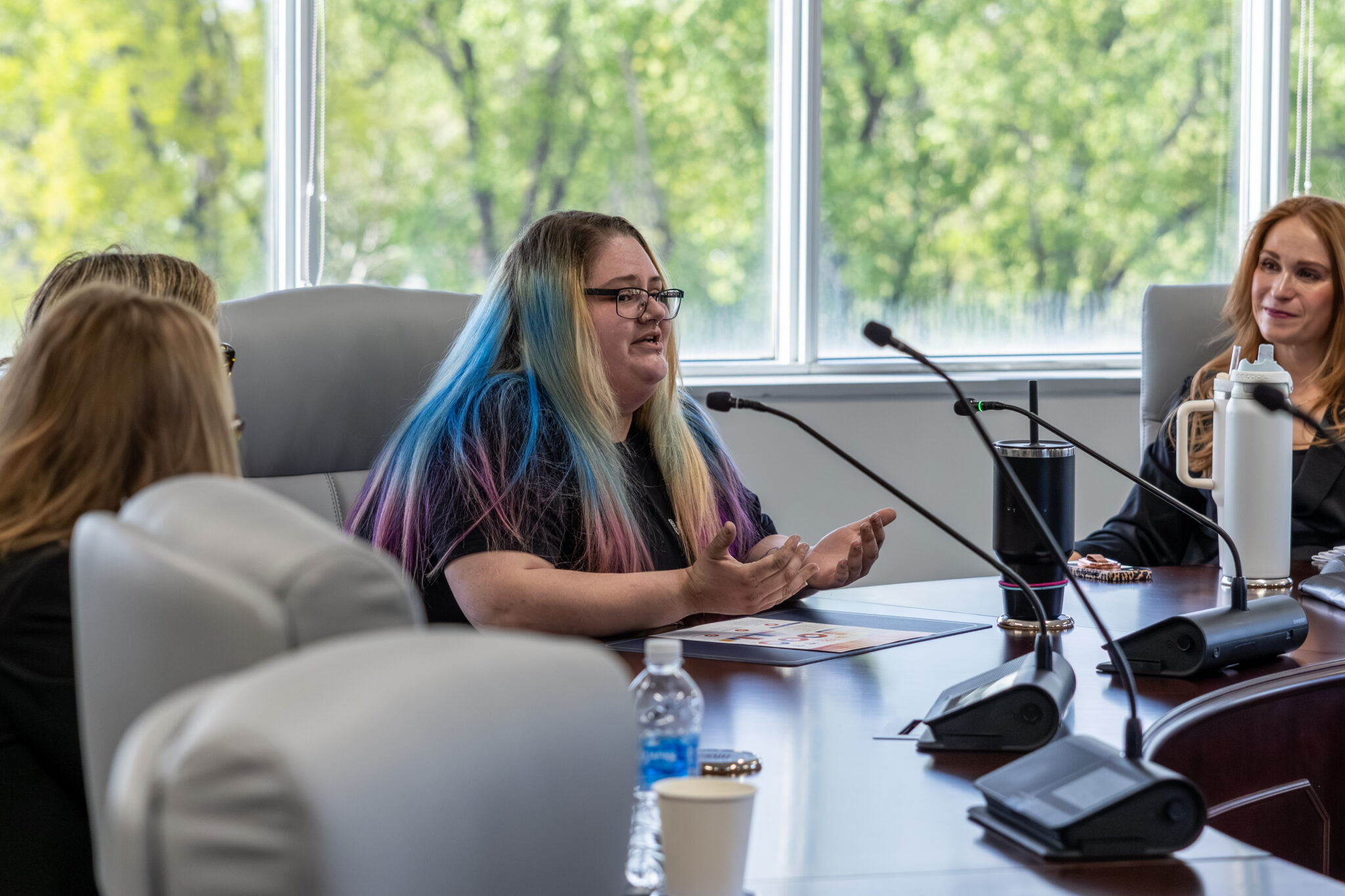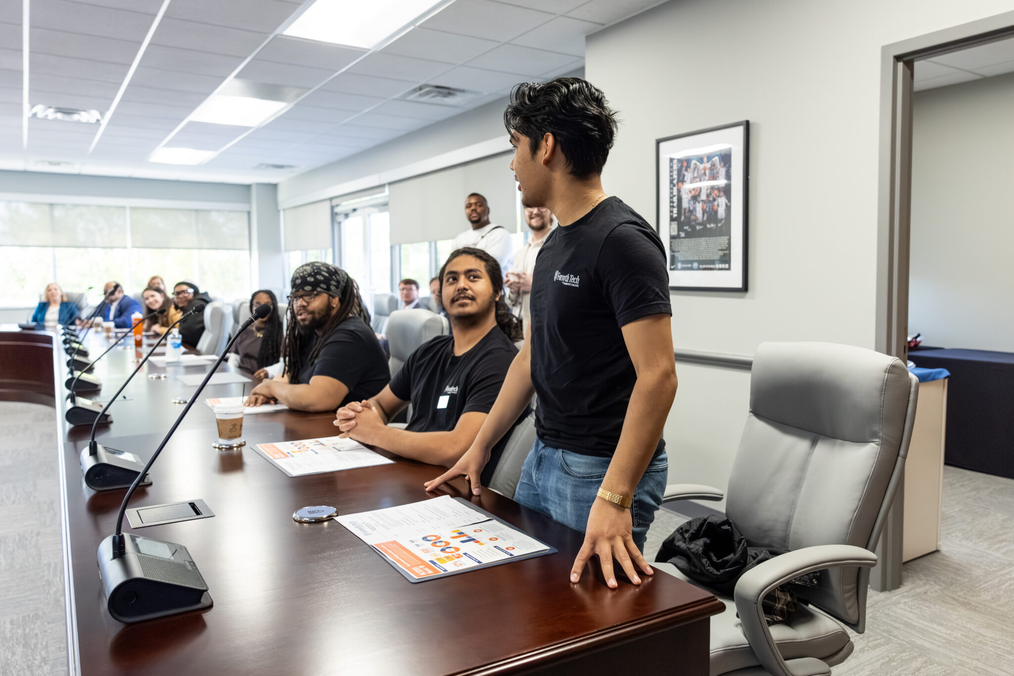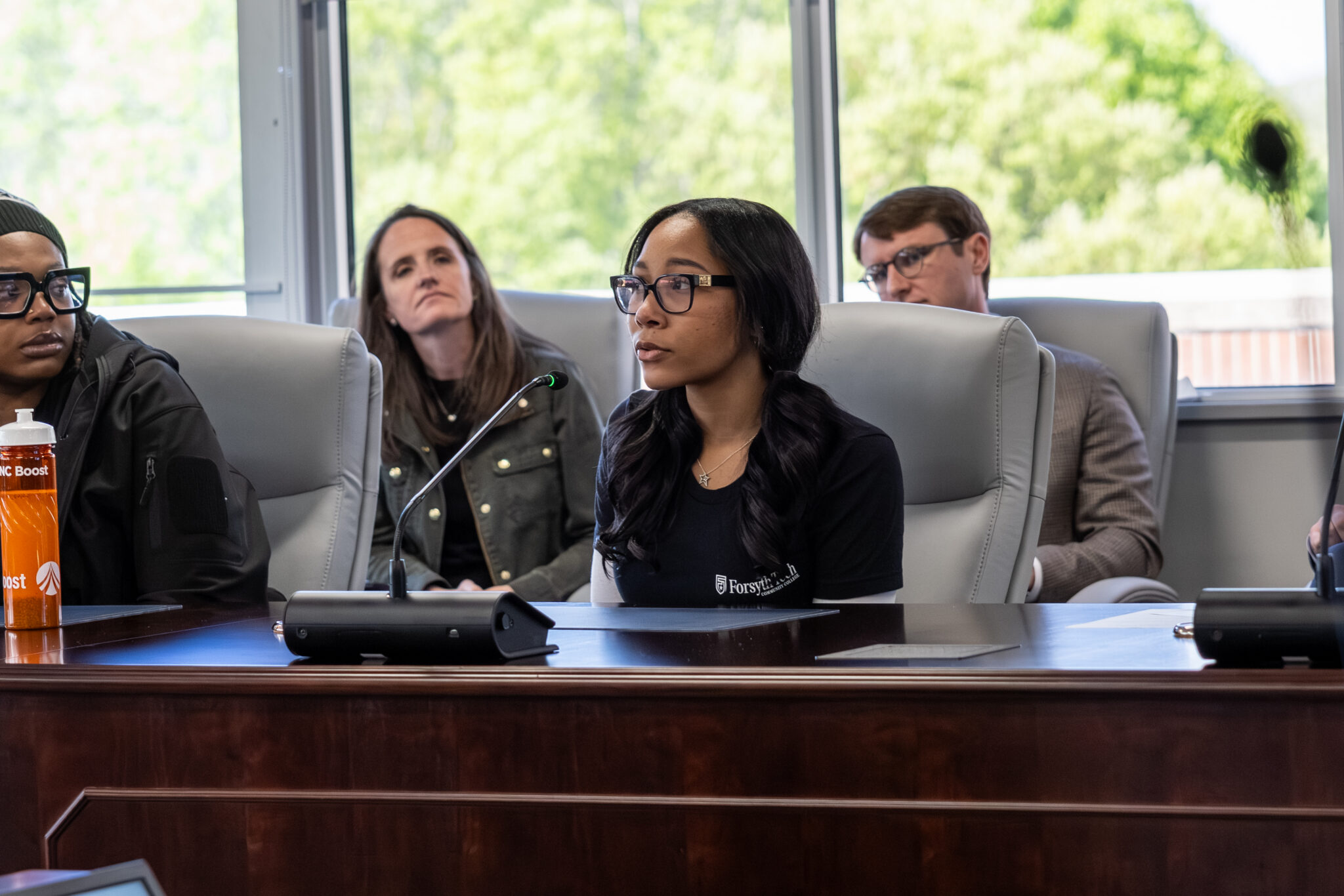 Forsyth Technical Community College (Forsyth Tech) students, staff, and faculty recently gathered with Rep. Amber M. Baker, D-Forsyth, Sen. Dana Caudill Jones, R-Forsyth, and Sen. Paul A. Lowe, Jr., D-Forsyth, to discuss the college’s strategic plan alongside the implementation of the Boost program.