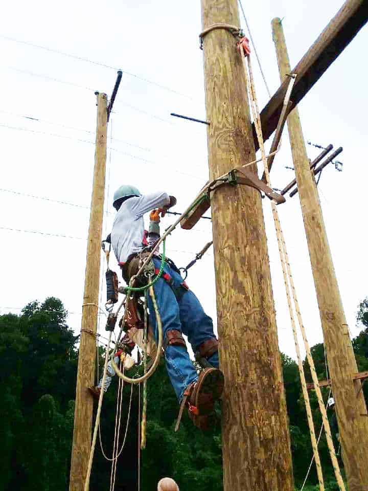 That is exactly where Electric Line Construction Academy graduates aim to find themselves after completion of the 16-week course offered at Nash Community College. Climbing high above ground level to enact know-how of electrical engineering against a variety of atmospheric elements is not for everyone. And while Hurricane Florence was on track to reach North Carolina earlier this month, NCC had a record number of Electric Line Academy students already working with utility companies in temporary positions preparing to restore power.