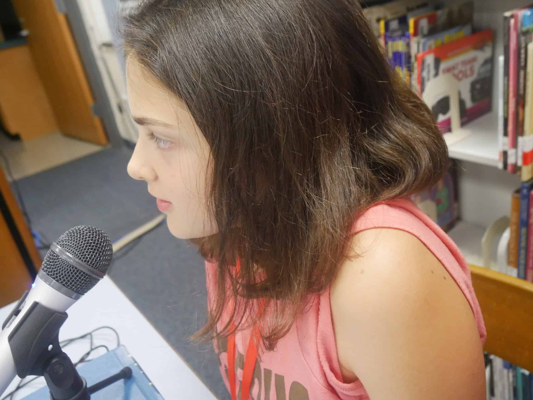After breakfast, we went into the PAGE classroom, and I read and wrote a bit until I was called to work on my story with Anna. So we worked on my digital story until I was good with it and then I recorded. I was nervous, but I just kept drinking water and repeating after Anna.