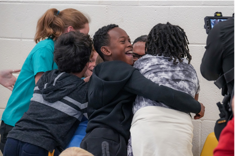 The anticipation of the buildup was palpable (turns out Superintendent Mo Green’s acting talents are fire, as the kids say) and as it was time to announce which teacher had just won a $25,000 personal prize, the elementary kids could barely hold it in. When they announced “the winner is… Mr. Shane Henderson!” everyone in the room jumped up in thunderous applause.
