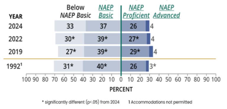 Figure 2: Trend in Eighth grade NAEP Reading Achievement-level Results, 2024