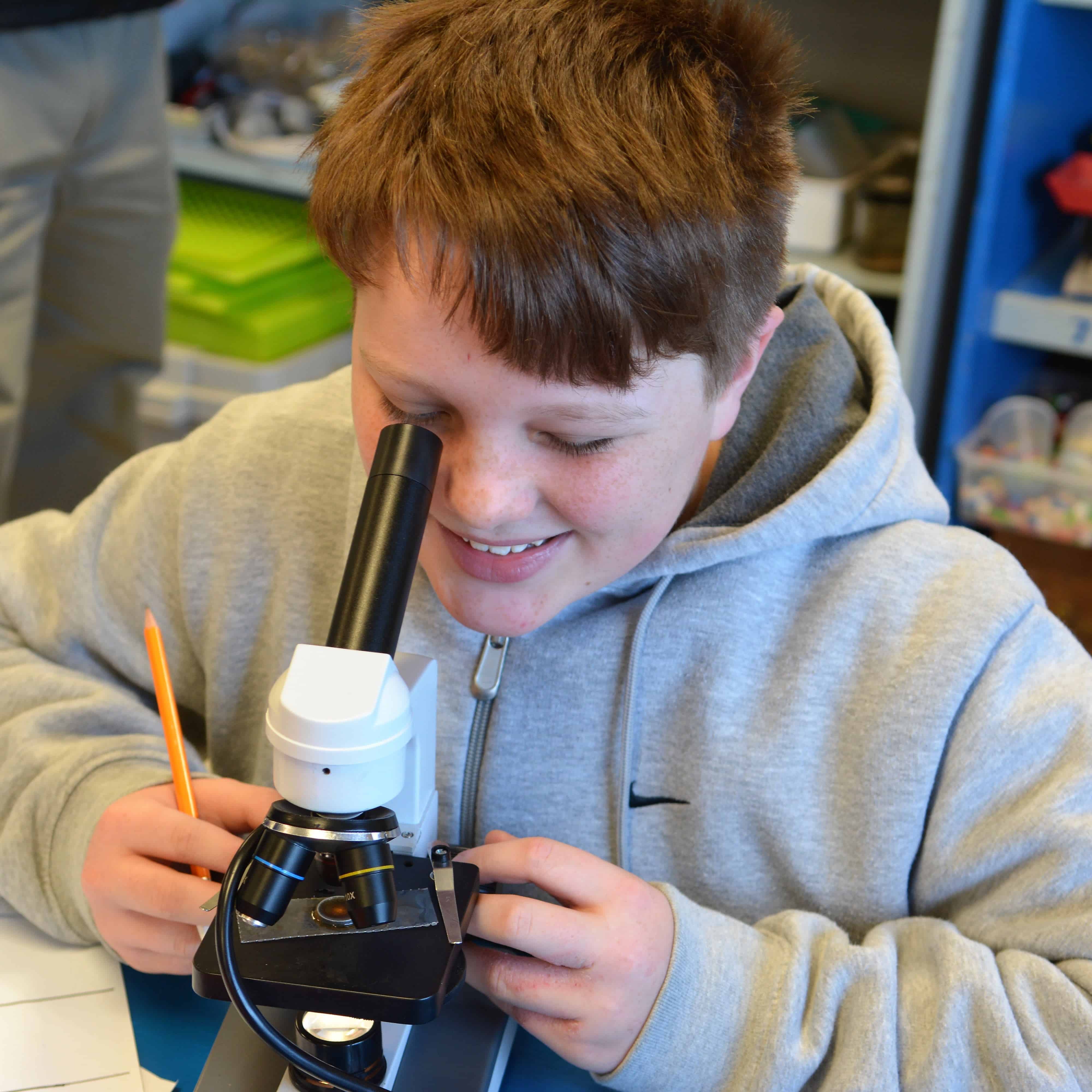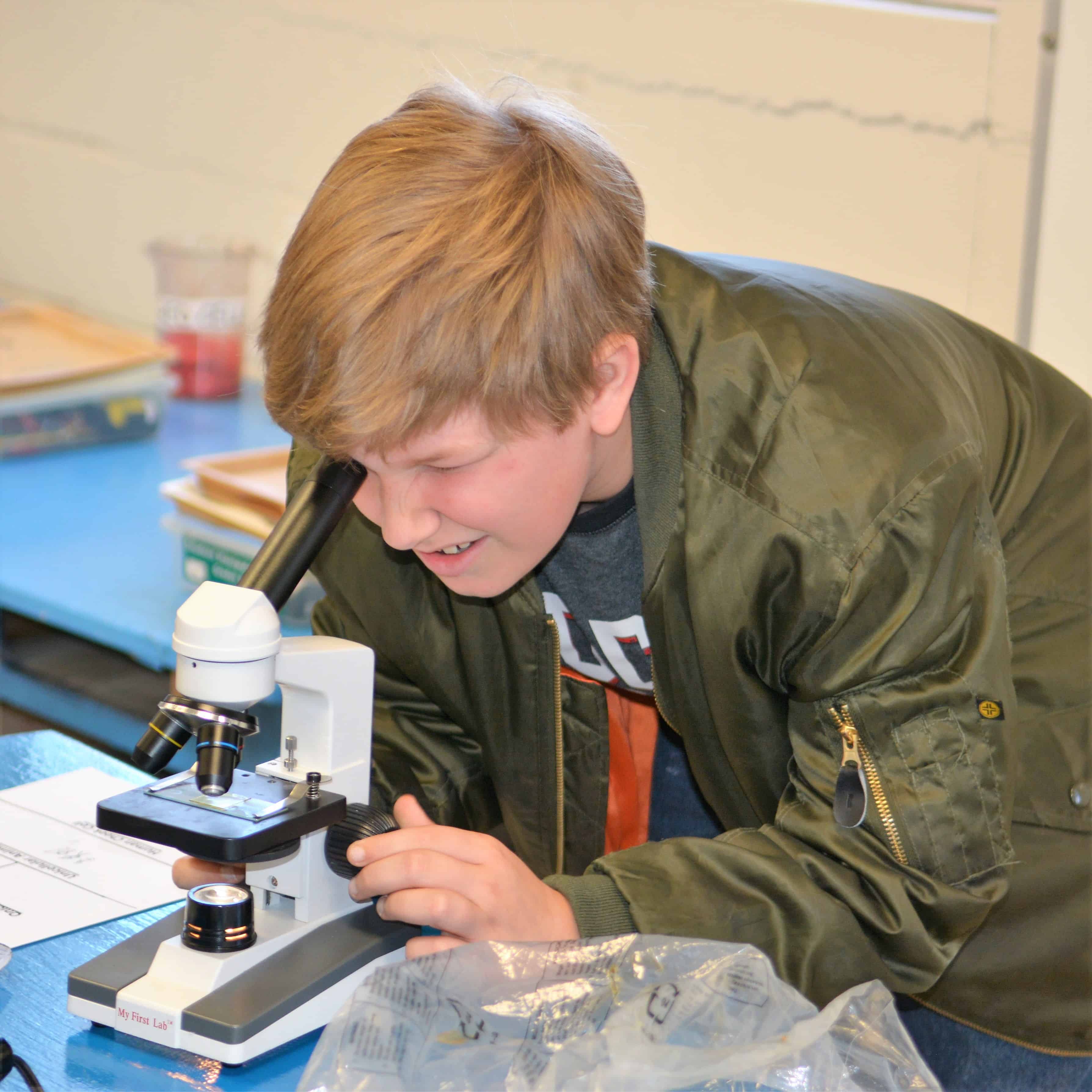 In this science laboratory, each student has access to a microscope, and they are beginning to learn about the human body by learning first about plant cells, animal cells, and unicellular animals. Owen calls me over asking, “Do you want to see how gross it is?”