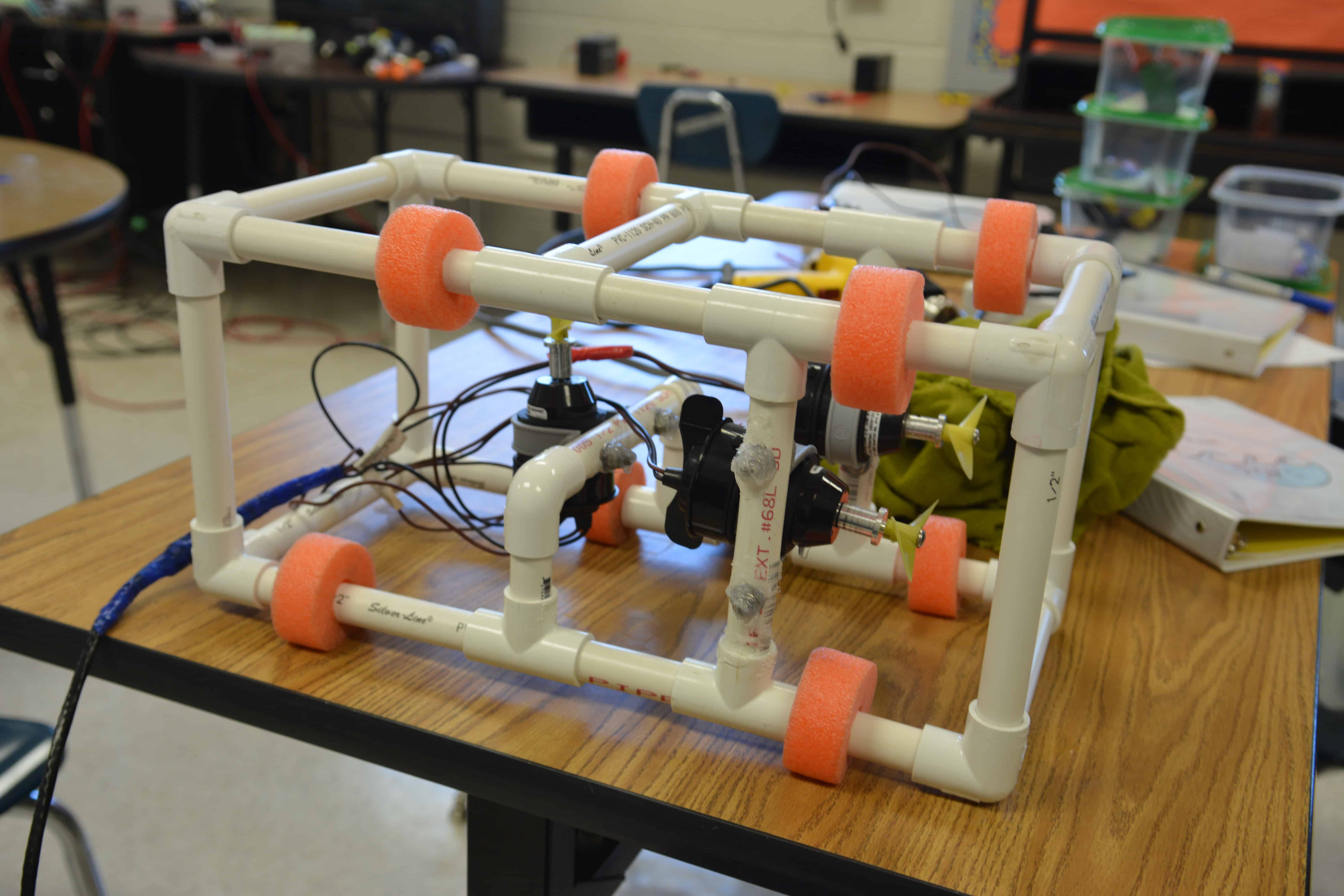 All fifth-graders at the school are exposed to underwater robotics, and there is a pool to test the robots. The robots are built and programmed to perform specific tasks, like picking up rings from the bottom of the pool floor.
