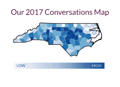 As we drove across our state in the fall of 2016, we listened to talk radio, Christian radio, old time country, and bluegrass. The conversations held on these stations was often times different from the conversations happening in our urban centers. We would see handmade signs for candidates and causes that were rarely spoken of in Raleigh, and we began to wonder what was going on across our state. We attended meetings focused on issues not mentioned in committee meetings of the General Assembly. We wondered what we could do to make sure more citizen voices were heard by those in positions of power.