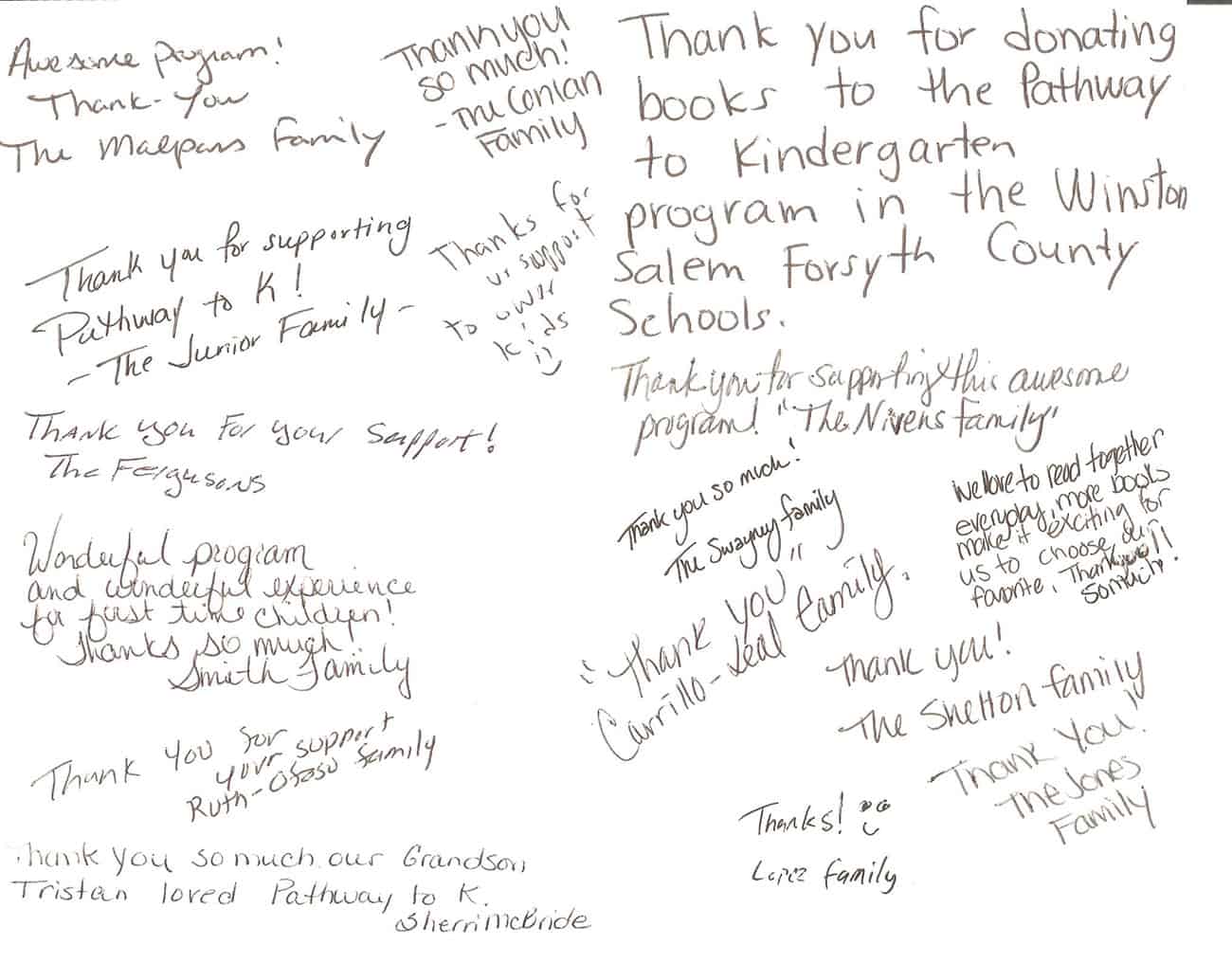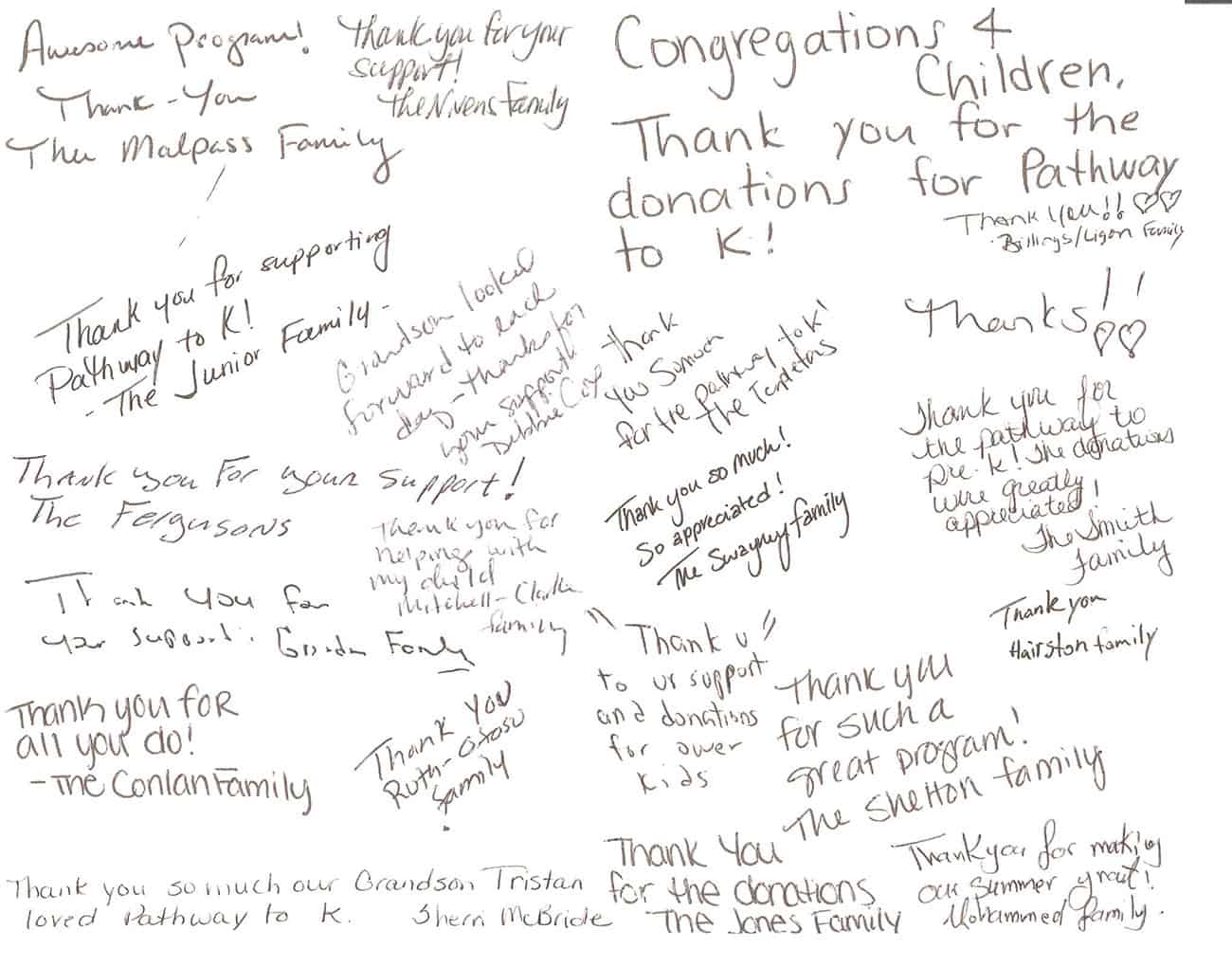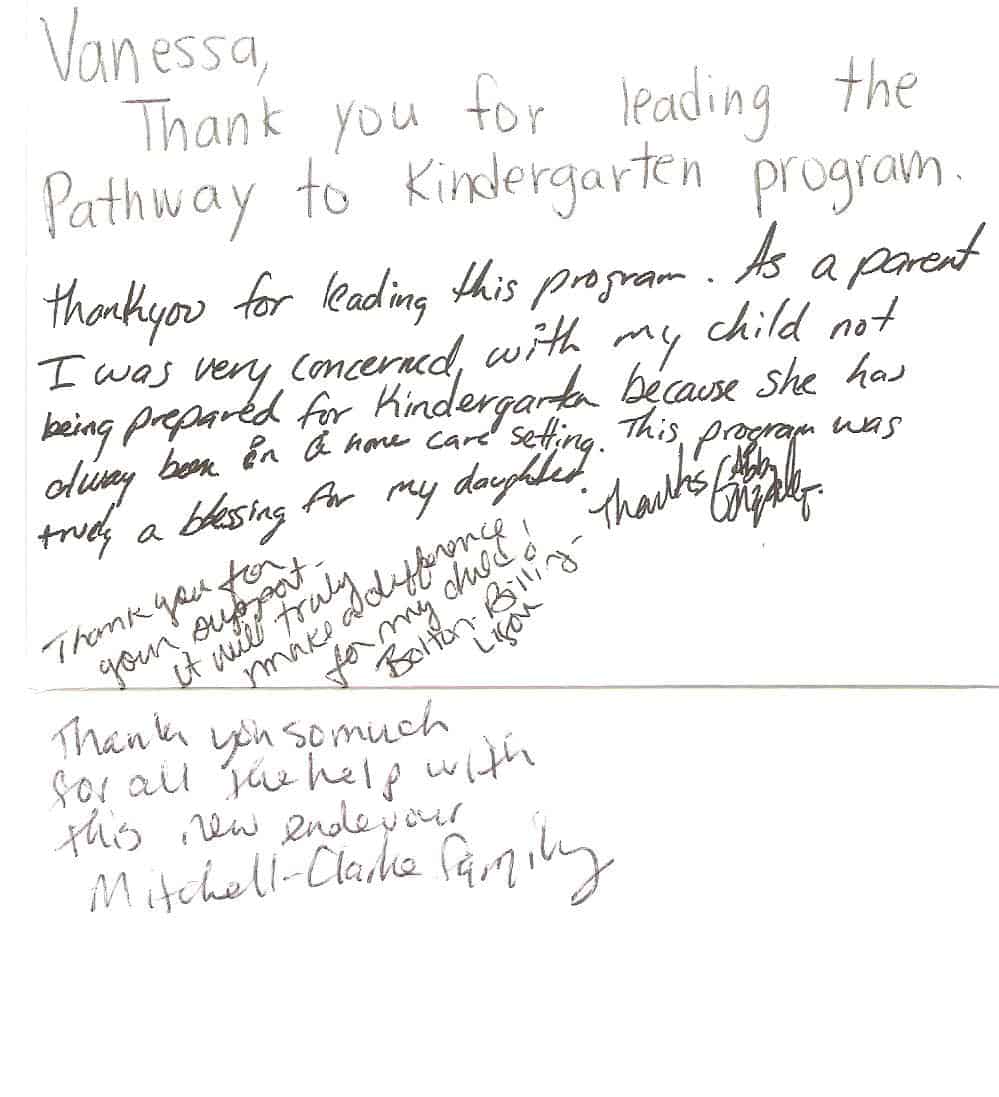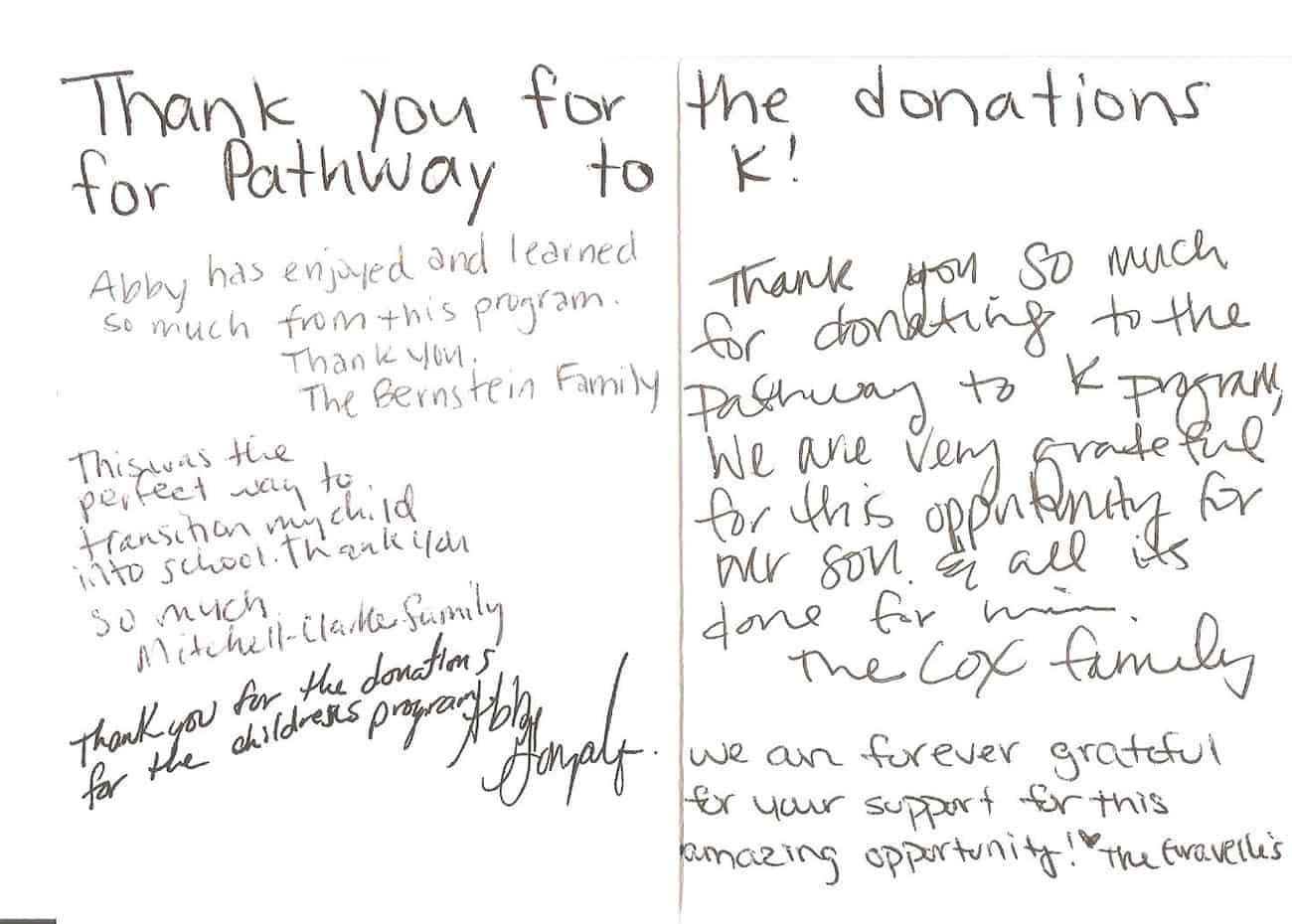 Staff at one of the 10 schools participating in the Pathway to K program asked parents to write a note to Osborne and her team. Below are some of those notes from the families whose children were helped.