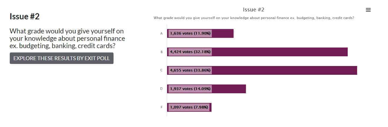 Students can explore their results by exit poll and compare their answers to the statewide results.