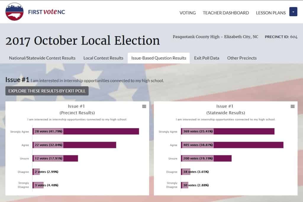 Eighty-seven schools from across North Carolina have signed up to participate in the 2017 First Vote NC local elections.