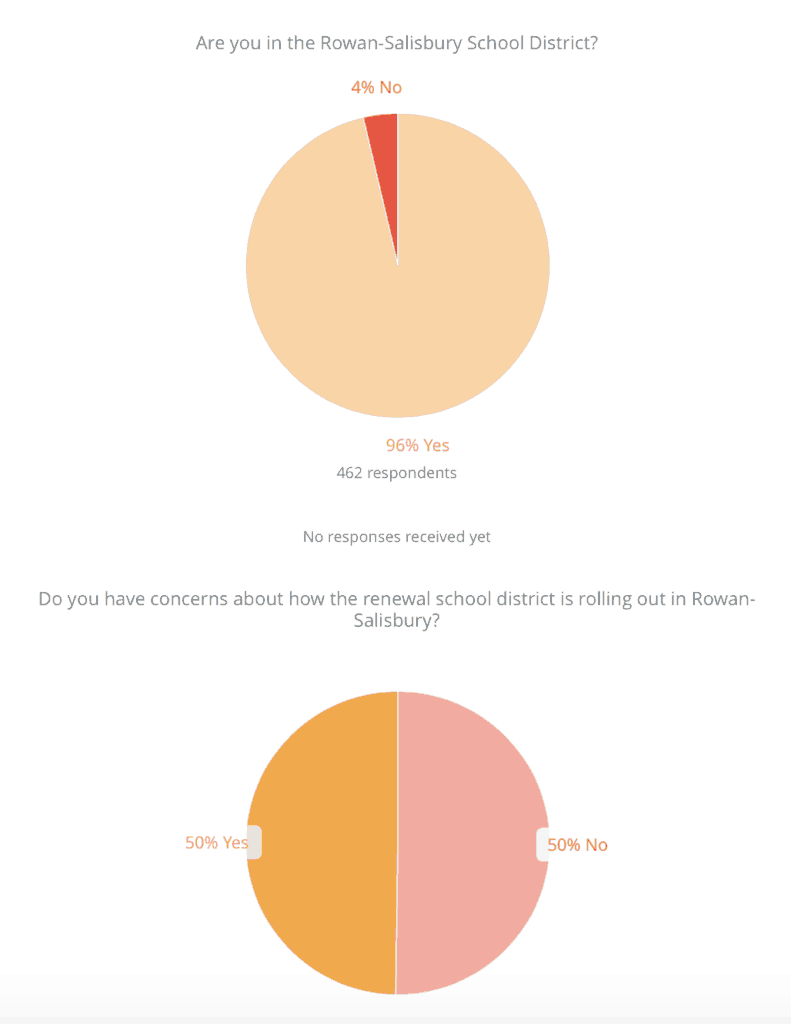 The majority of respondents said they live in the Rowan-Salisbury School District. Among those who do live in the district, there was a 50-50 split when asked if they had concerns about how the renewal school system is rolling out.