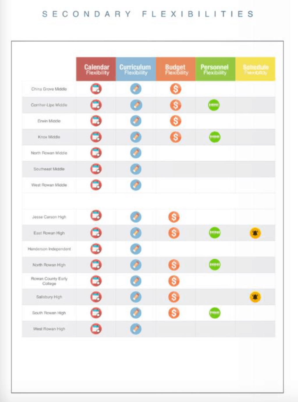 She showed State Board members a snapshot of all the schools in the district and the kinds of flexibility they are using in elementary and secondary grades.