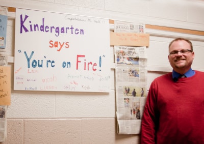 Principal Hall works hard, intellectually and physically — he’s let students turn him into a human Rice Krispy treat and duck-tape him to the wall after achieving learning goals. If Old Town meets his current reading challenge, Hall vows he’ll camp out on the school’s roof for a night. It’s this infectious willingness to take risks and put himself on the line that has contributed to Hall’s success in instigating a new model at Old Town — and look past his school’s “failing” grade.
