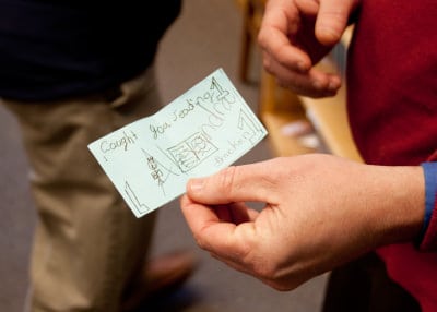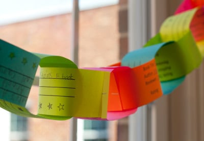 Hall and his teachers have creative ways to motivate students to read at Old Town. These “Caught you reading!” cards are handed out students who can use them to “buy” books. A chain of student and teacher “book reports” nearly wraps around Old Town’s hallways.