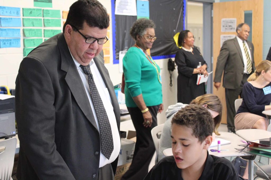 Walking into Sandy Grove Middle School is like walking into a textbook example of a “Good-to-Great” for education. Students, regardless of their challenges outside the classroom, are all held to the same high expectations and benefit from personalized learning. Teachers feel valued and supported while making data-driven decisions using the latest technology. The principal and assistant principals (as with all principals I spoke with in Hoke County) feel empowered and supported by the Superintendent. And the Superintendent — who, by the way, was 2016 NC Superintendent of the Year — is given support and latitude from the Hoke County Board of Education.