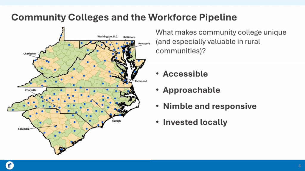 The webinar was held as part of the Richmond Fed’s Invest in Rural America series and focused on the role of community colleges in rural workforce development.
