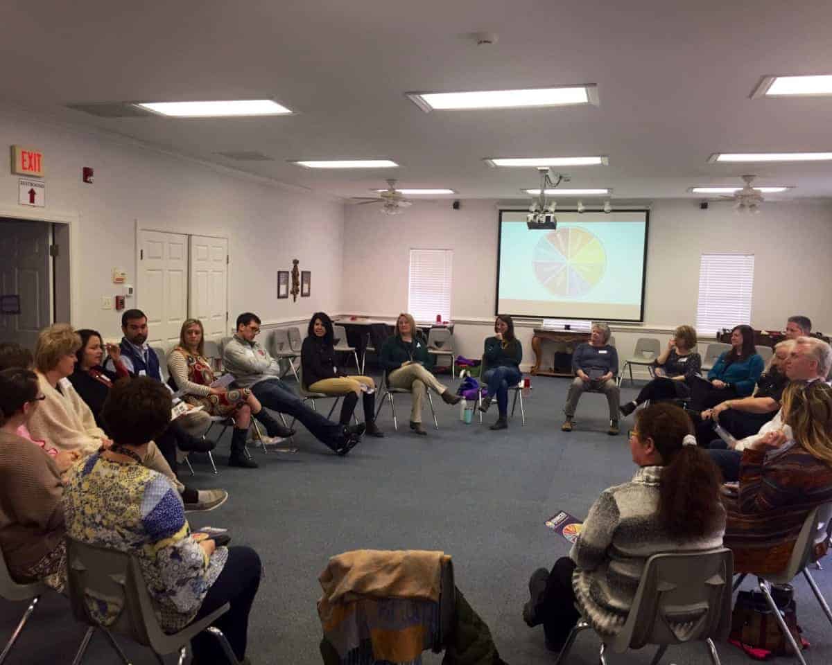 Community members, including parents, educators, church members, faith leaders, and local law enforcement, joined the first day of training. This portion of the program aims to train these community members as “adult advisors” and paints the picture of every day student life. They discuss social groupings and how Sources of Strength can use specific students for network change, emphasizing how it takes a combination of the right kids to help spread messaging and make those who feel marginalized realize that they are not alone.