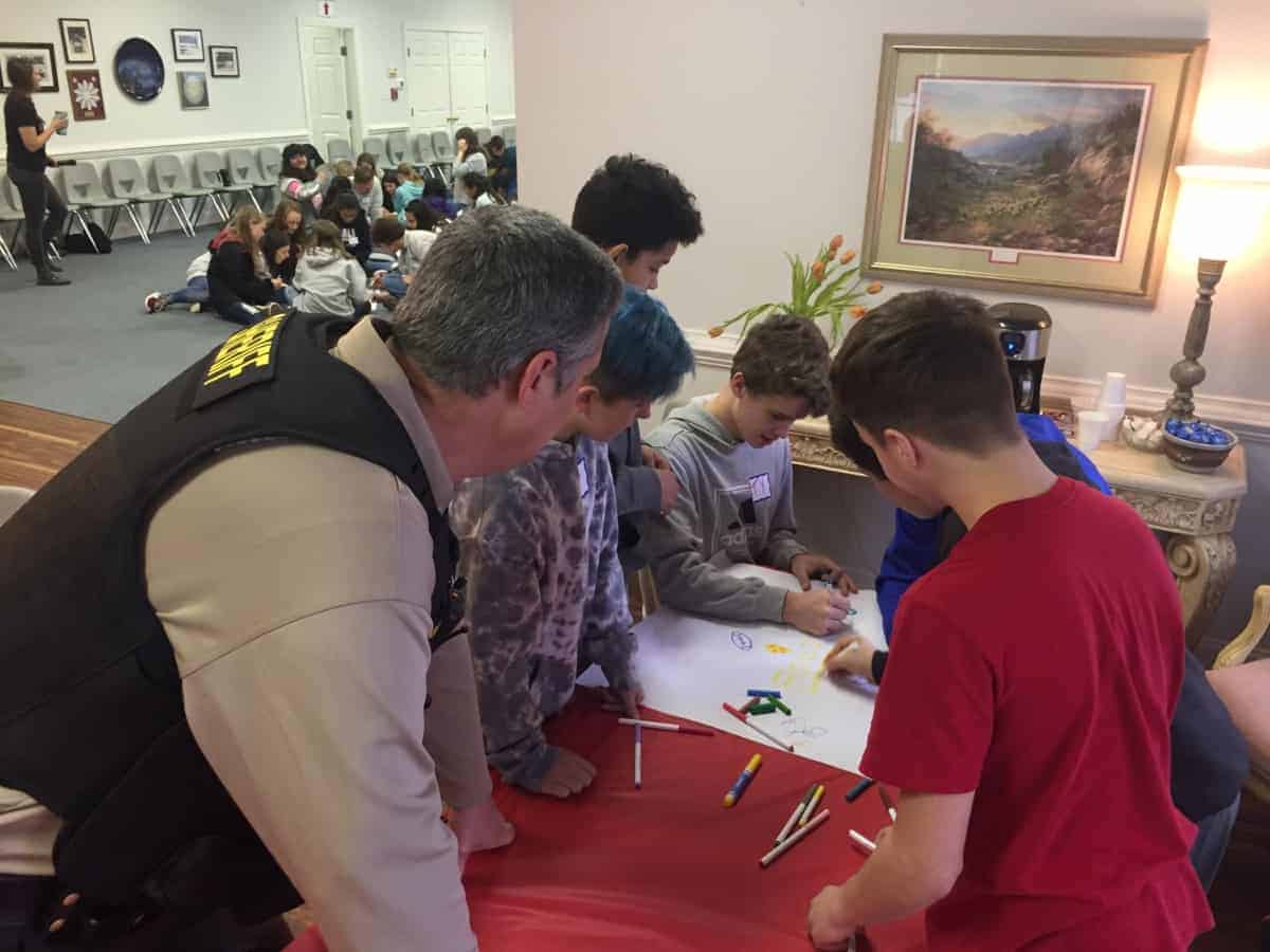 While reviewing the ground work and philosophies of the program, adults run through the exact same training students will participate in the next day. Activities include drawing, team building exercises, numerous ice breaker activities, and more. After seven hours of training, the adult advisors left with resources to lean on as they become mentors and support for the youth of their community.