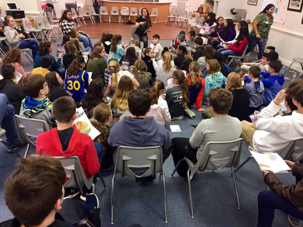 The next day, 71 students from North Davie Middle School began their training with a musical chairs icebreaker. These students were nominated by teachers and had to attend an informational meeting in school before committing to become peer leaders. They were full of energy, attentive and enthused to be there.