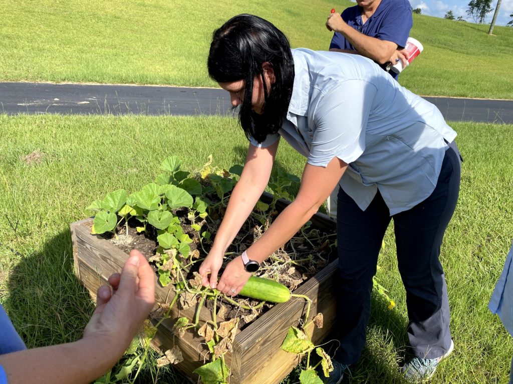 In the short growing season since the beds were brought in, the school grew cucumbers and green beans and have planted gourds, pumpkins, and corn for the fall season. Brooks attends the bimonthly satellite growers group hosted by Lillington UMC and Earp. It is part of the church’s garden program, and a way for participants to share resources and stories, struggles and successes.