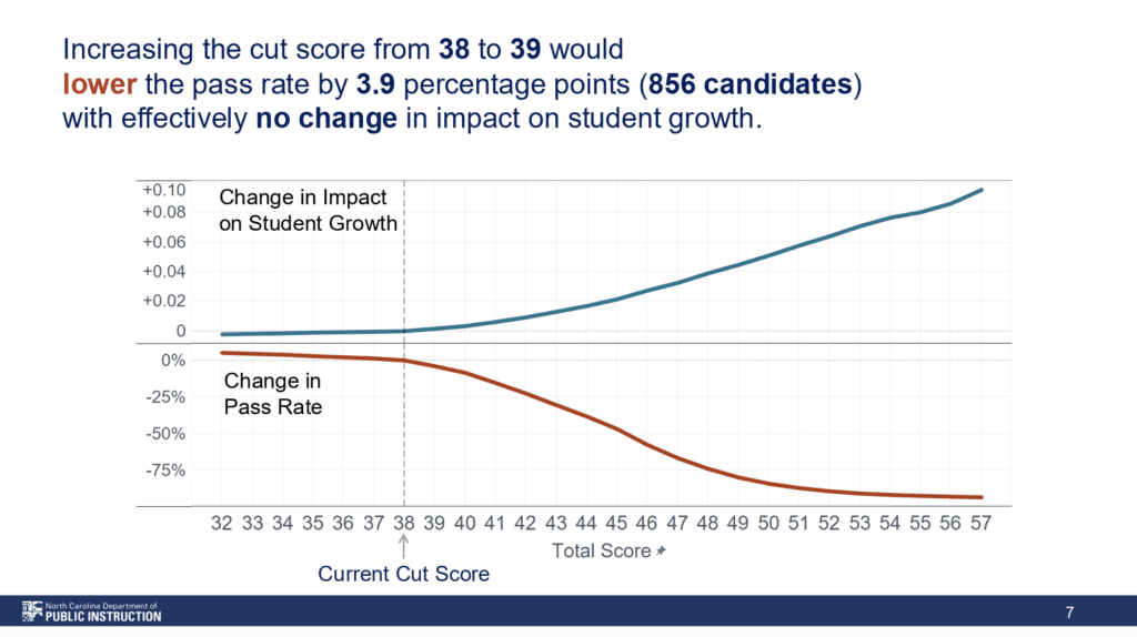 According to the Department of Public Instruction (DPI), raising the cut scores and increasing test attempts wouldn’t make a “significant difference in the effectiveness of those teachers.”