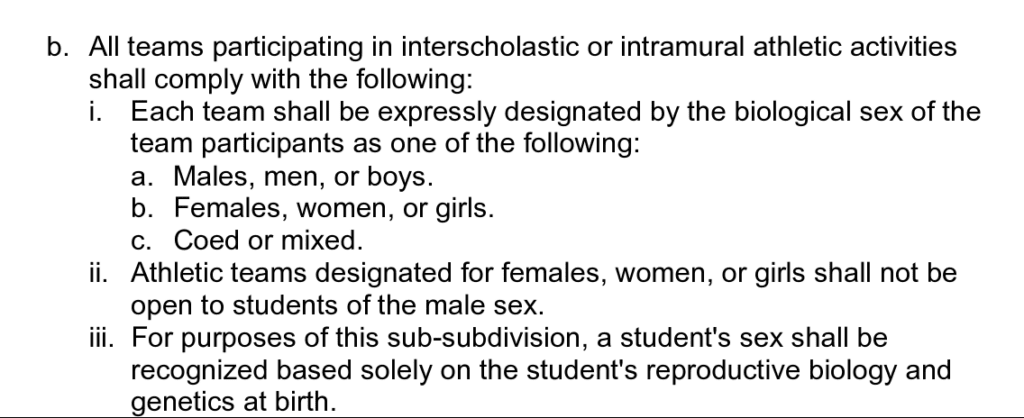 The manual requires teams to be “designated by the biological sex of the participants.” The new language states: