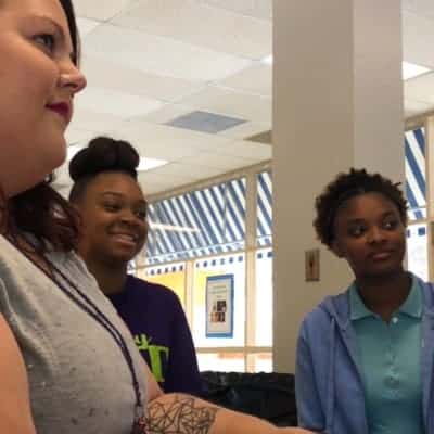 After the check presentation, SECU Foundation representatives sat down with First Vote teacher Tatum Weaver and seniors Jada Haire and Nashayla Malloy to talk about the program and the importance of civics education.