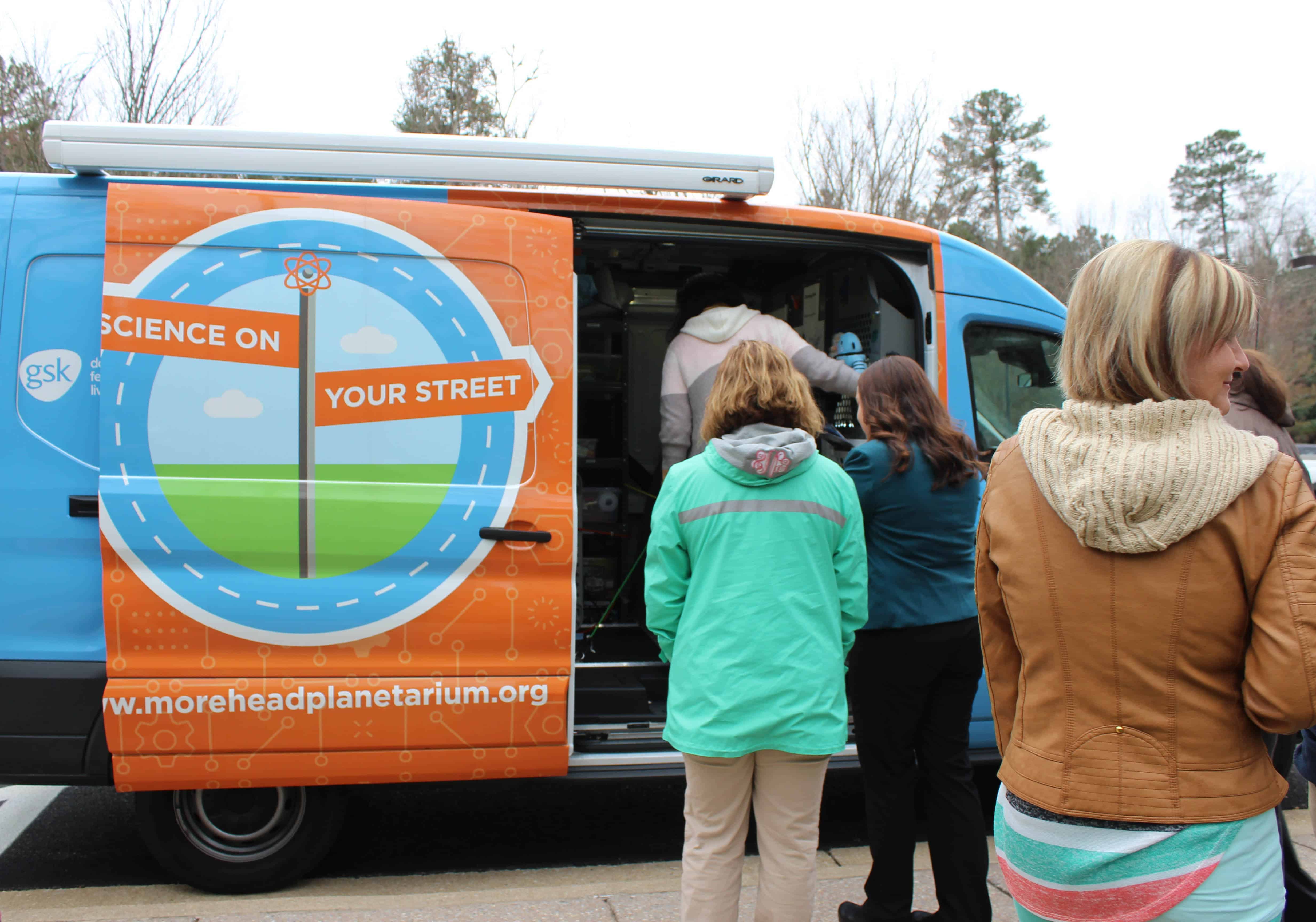 Outside of GSK headquarters, two mobile units invited teachers to view opportunities they can bring to classrooms. The Morehead Planetarium and Science Center’s van was filled with crafts to inspire students in the design and engineering field while the FABLAB trailer, a mobile makerspace, featured 3D printers, a vacuum former, a laser cutter and more.