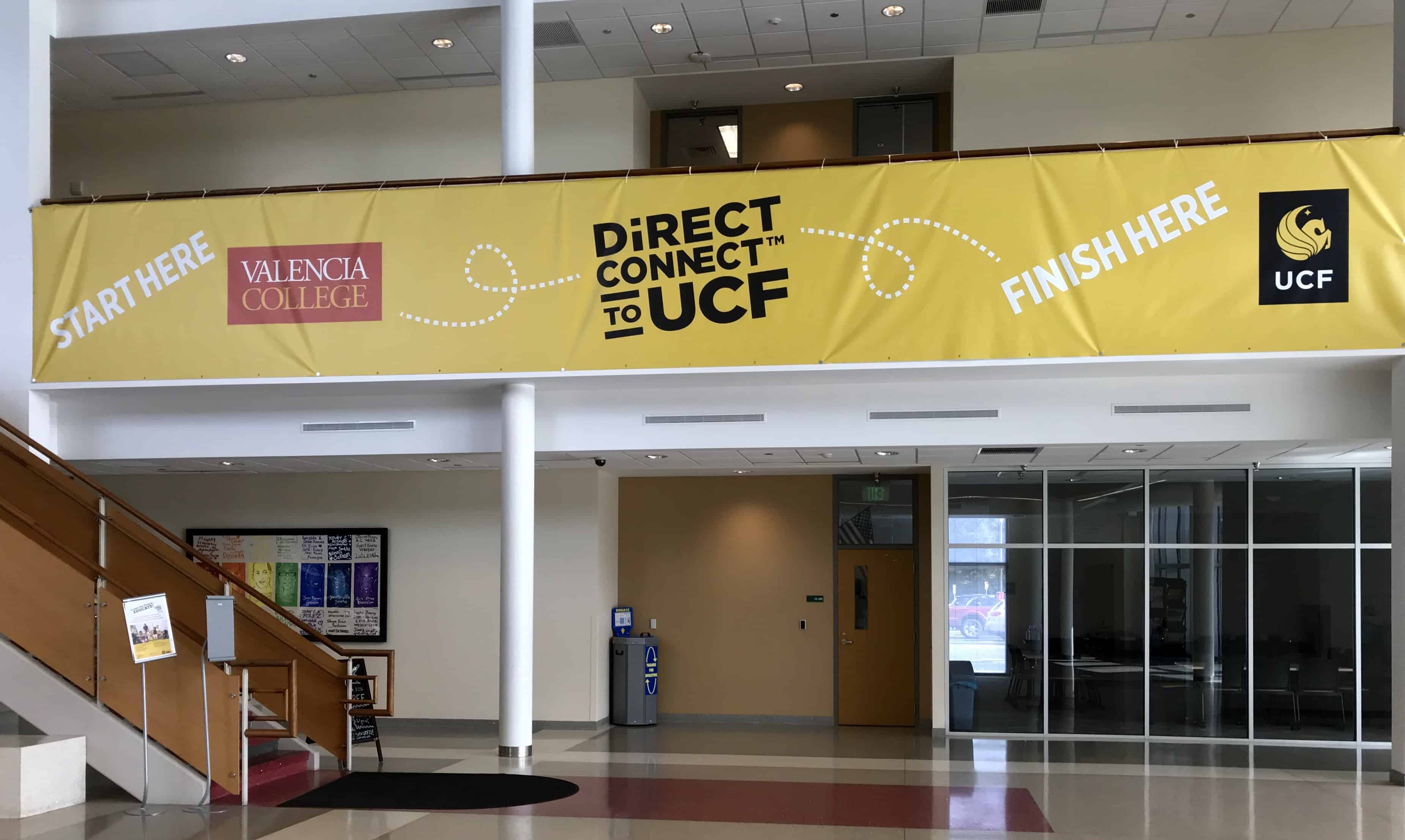 Along with guaranteed admission to UCF, students receive comprehensive advising from DirectConnect success coaches to help ensure a smooth transition. Two of Valencia’s campuses — West and Osceola — offer UCF classes and advisors on-site. For example, students could complete both their AA and their bachelor’s in elementary education solely at UCF Valencia West or UCF Valencia Osceola. A third Valencia campus, East, has a UCF suite on-site that houses advisors and offers courses in integrated business.