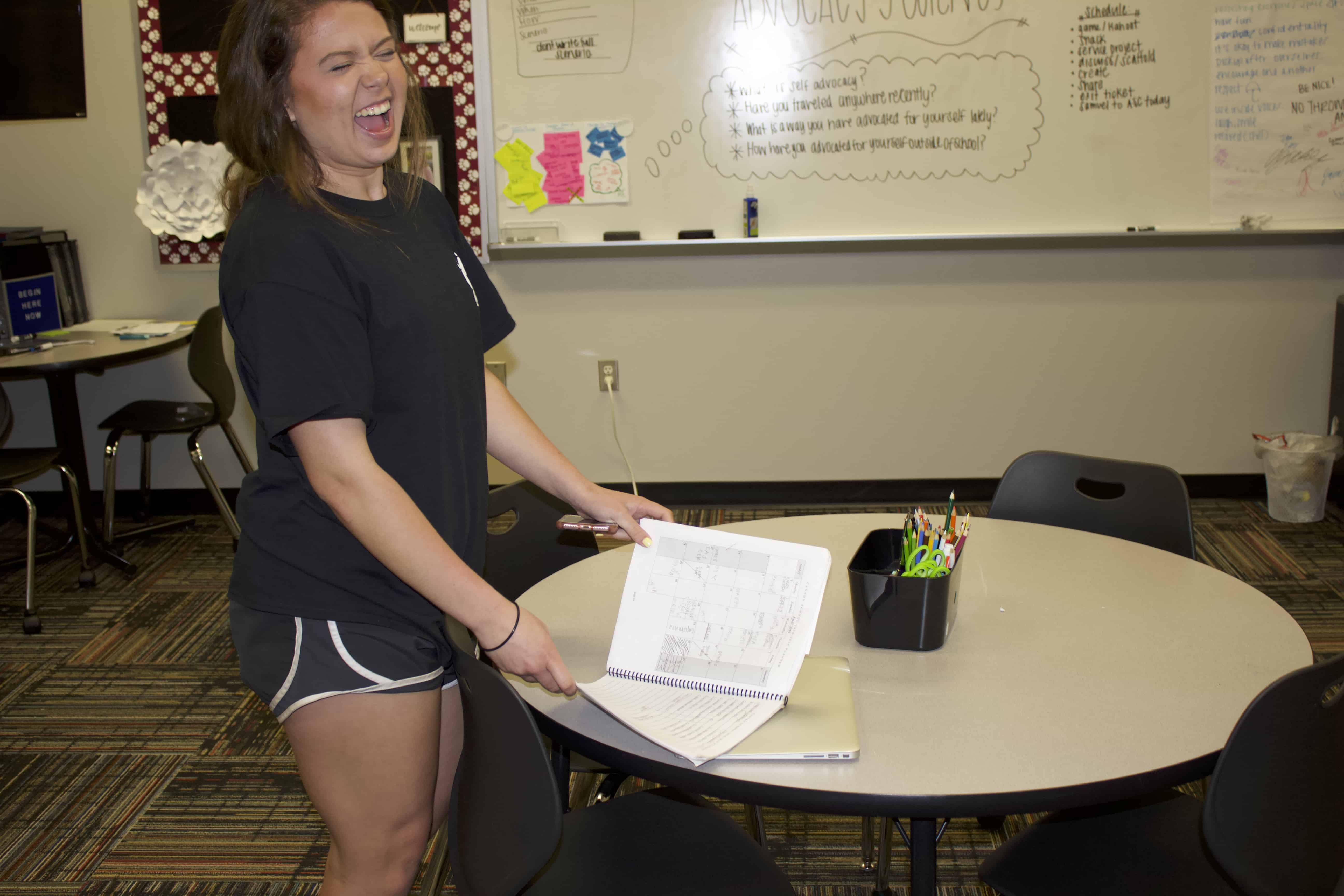 “I also have my work schedule in there, and then I have my schoolwork,” she said. “And if I have a project that I’m doing for months, I’ll plan it out ahead of time. And so I feel like, because of my learning disability, if I’m forced to take more time on different things, I just know how to plan it out over longer terms than I would in [the] short term — which has really helped. If I lose the calendar, everything goes downhill. And so it just really helps me be more organized and know what’s going on in class.”