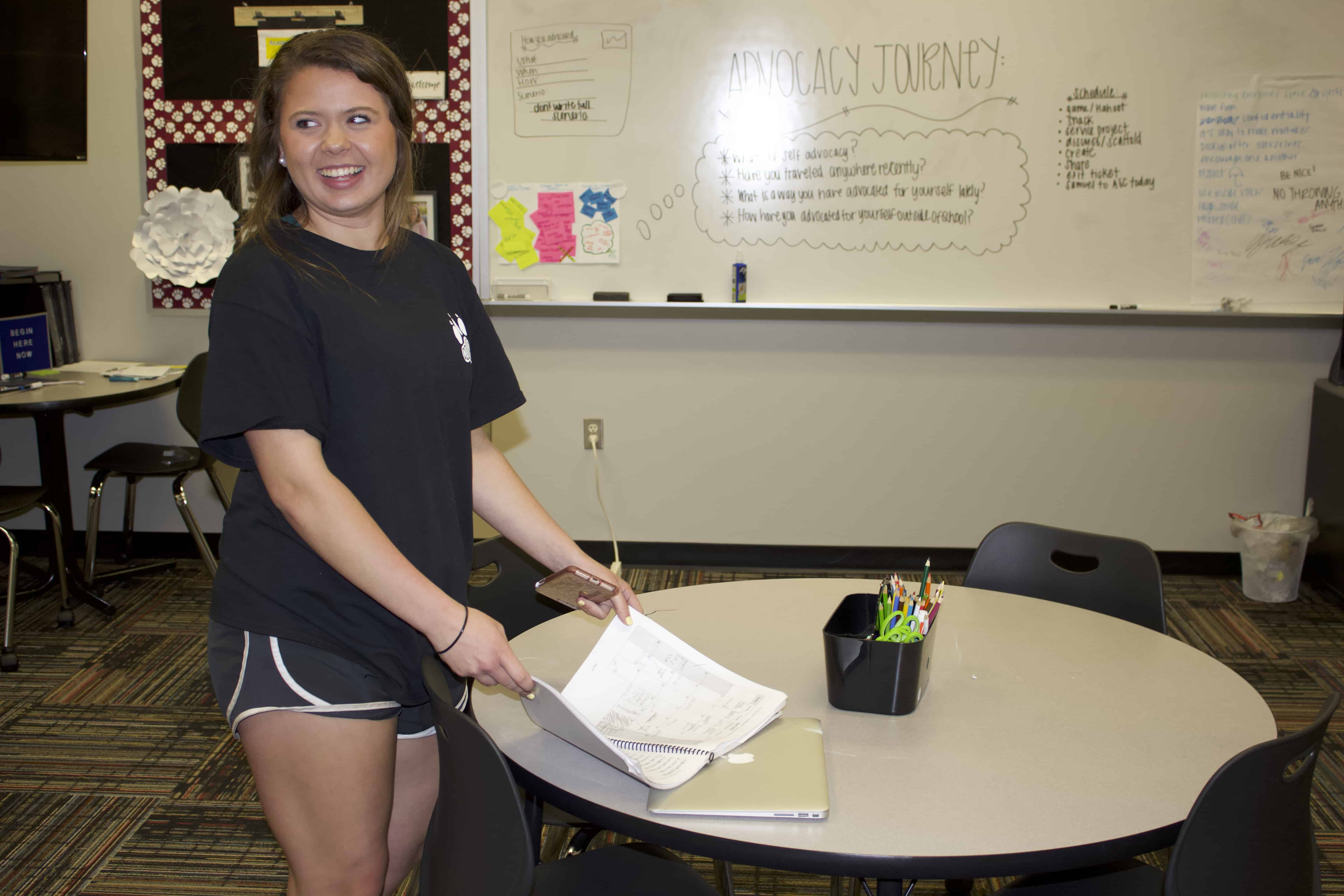 Hurtado had her senior intern at the time sit down with Pinto and show Pinto how to use a calendar. Writing everything in one place and being able to write out future assignments — as far as four months ahead — to see how everything played out on paper was helpful for Pinto. She also learned how to use color coding to draw attention to deadlines, tests, and activities.