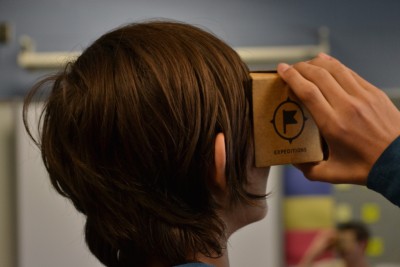 Her students’ pilgrimage to 5 Pointz only took a few minutes, as the Expeditions program used an unoccupied classroom in the school’s sixth grade building. Google provided a set of devices and Cardboard viewers for students, while Glace controlled the experience using a tablet that directed students on a guided tour of the street art exhibit. Once the tour began, students were standing throughout the room, heads gyrating as if they were curbside in Long Island.