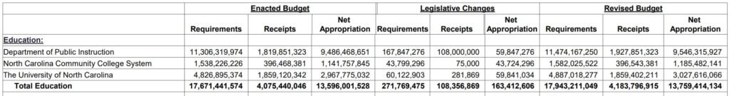 The total budget for education, including community colleges and the UNC System, is $16,083,808,838.