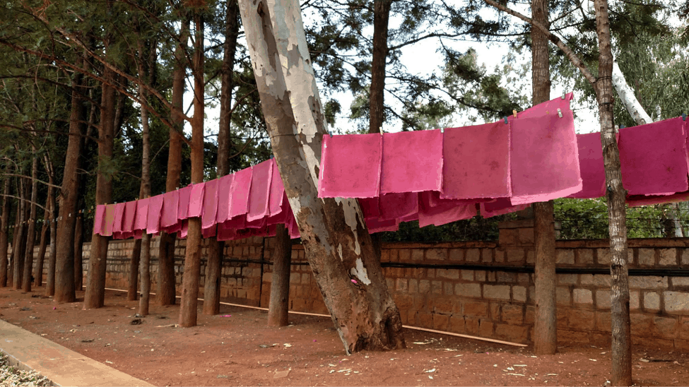 In two of the schools we visited, there were systems to recycle paper used by teachers and students. The old paper became pulp which was used to make new handmade paper folders, journals, and other products that could be used in the school. This closed-loop system was a beautiful example of a small community tackling an issue in an effective way.