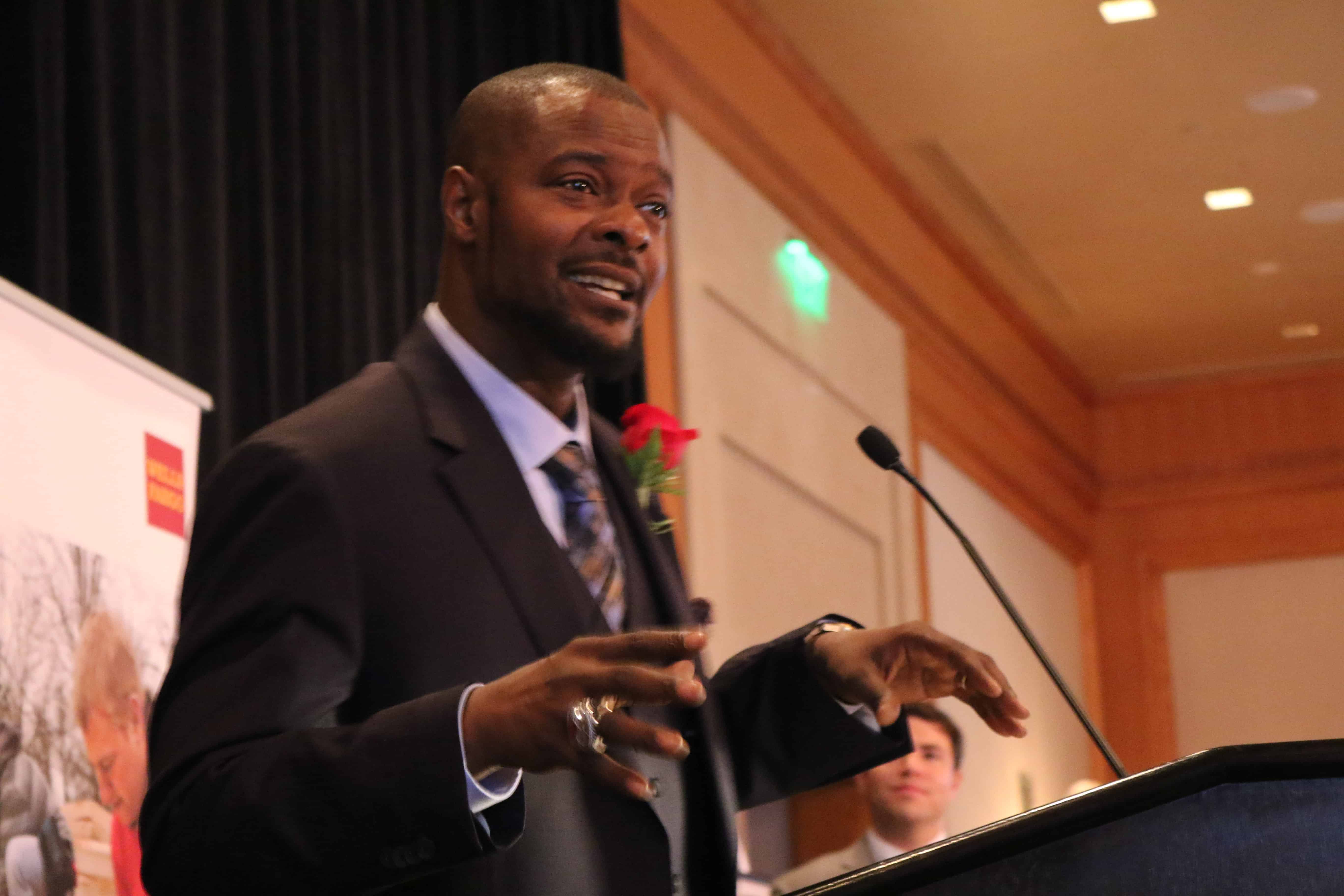 Before presenting the award to Wallace, Joanna Leclair, regional senior vice president of Wells Fargo, described his career accomplishments: using student data to personalize learning, including community in education, and raising student achievement in high-poverty schools. During his time as principal of H.J. MacDonald Middle School, the school exceeded the state’s growth standards while the student population receiving free-and-reduced lunch went from 19 to 64 percent.