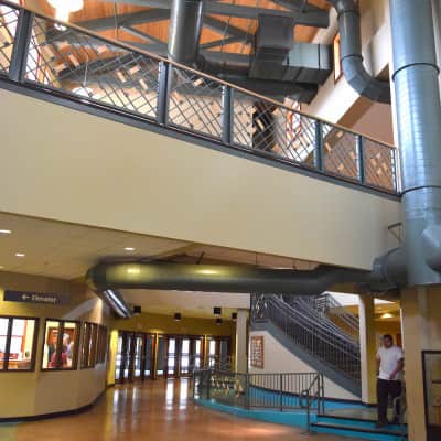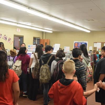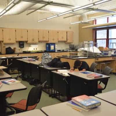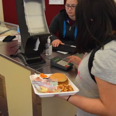 The focus on healthy food starts when you walk in the door where a sign announces “No Fast Food Beyond This Point.” The school offers universal breakfast and lunch, and there is no stigma as all kids punch in a code at the end of the lunch line. A central kitchen serves three cafeterias. There are no fryers. Baked sweet potato fries were served the day I visited, and I hear the BBQ is off the hook. That said, the school struggles to get high school students to eat breakfast at all, and they are considering providing breakfast to go in the commons instead.