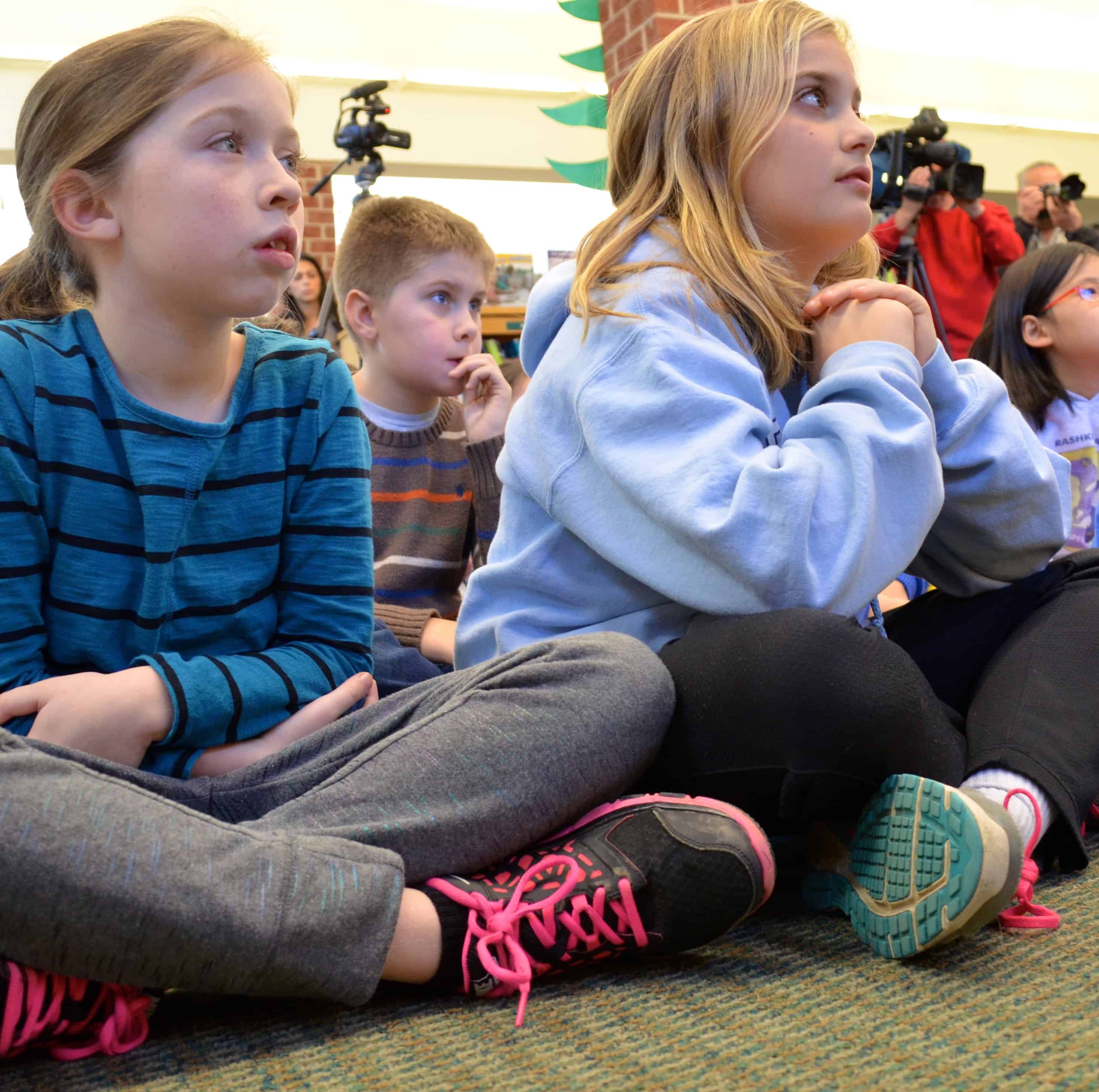 About 95 third graders at Rashkis Elementary School in Chapel Hill didn’t know what to expect when teachers escorted them into the school library yesterday. In minutes, University of North Carolina basketball star Marcus Paige would be reading to the rapt audience, but until he walked in, school staff wanted to keep it a secret.