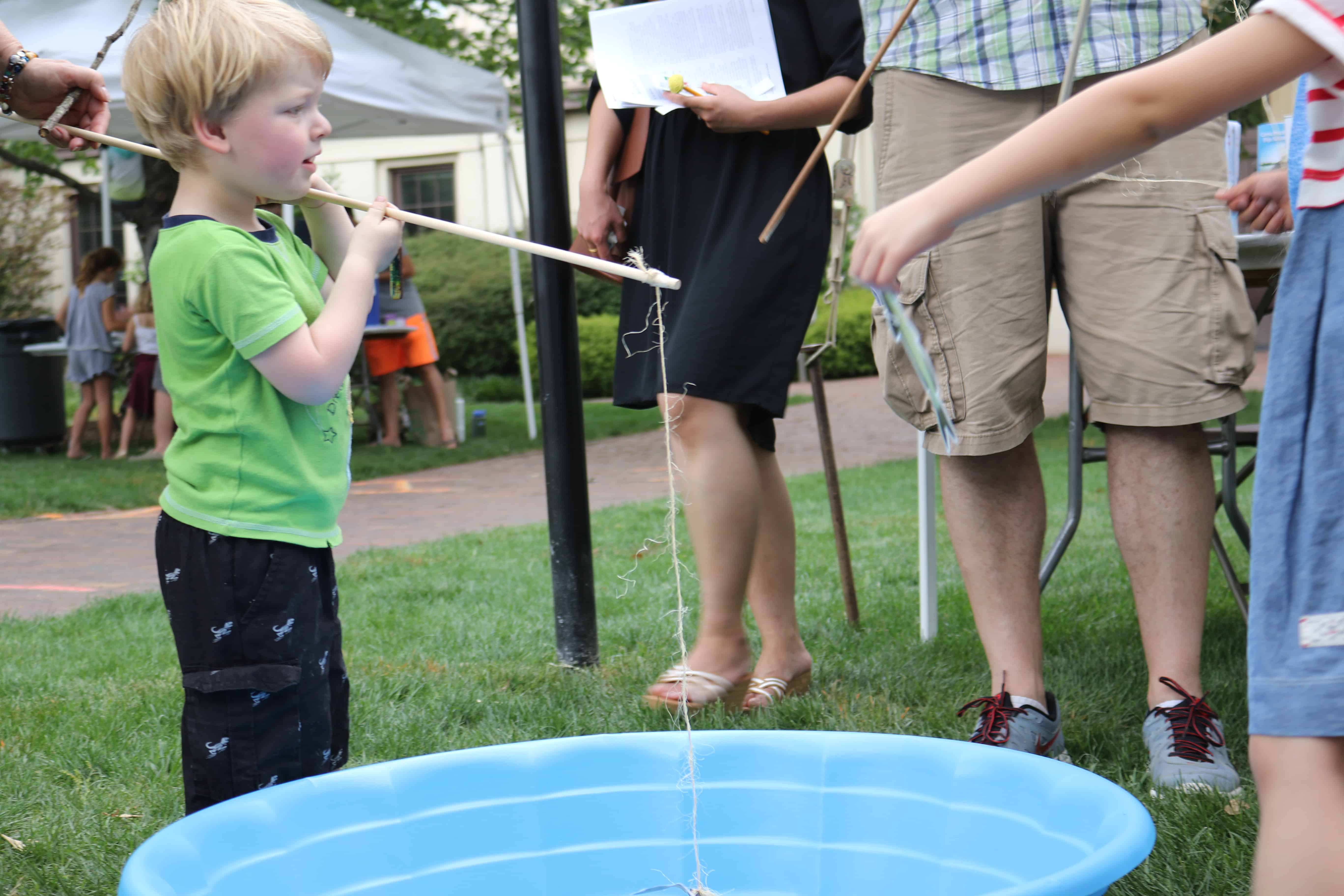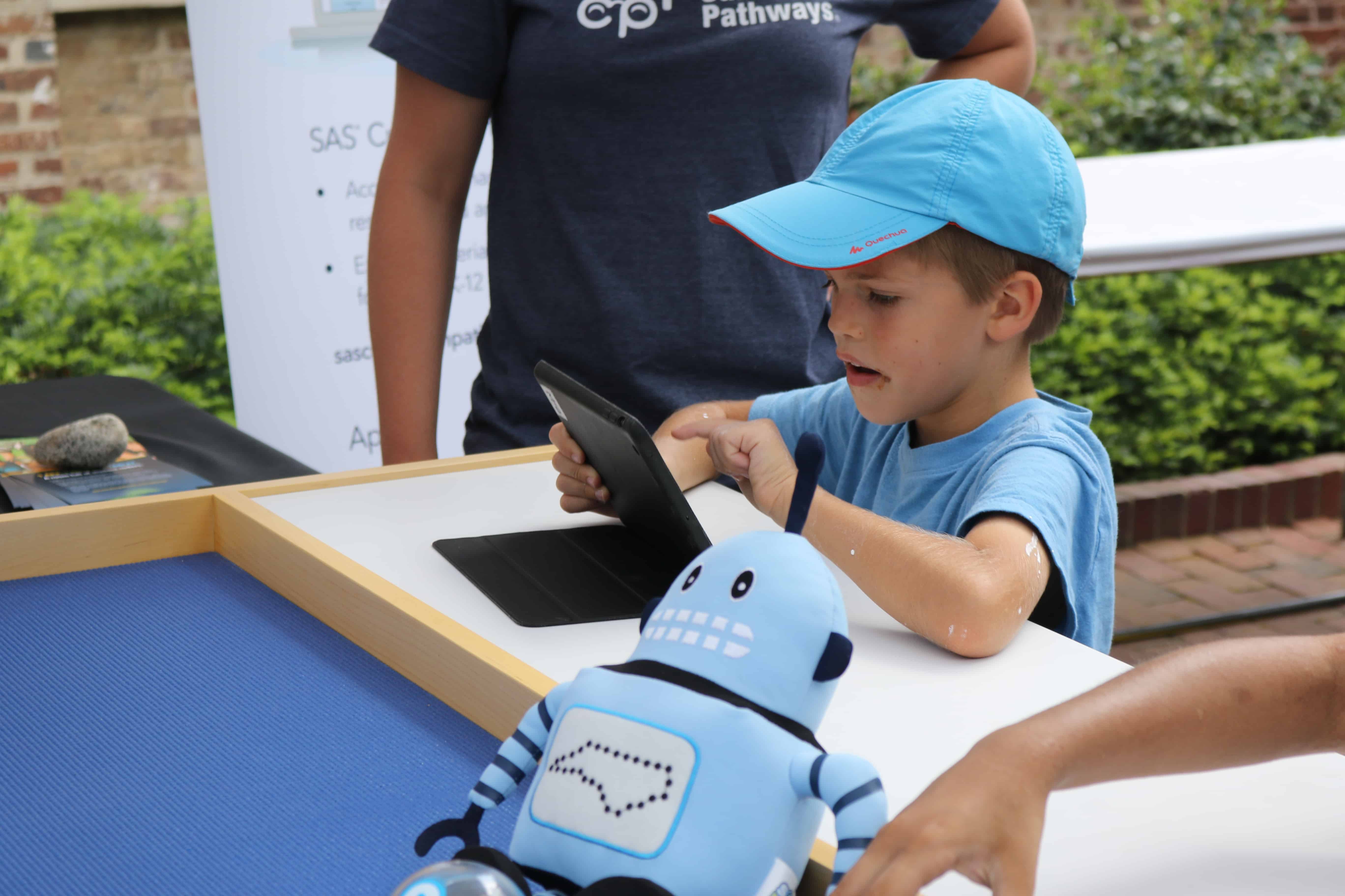 Children and their families went from tent to tent to learn about everything from how to program a spherical robot to travel across a table to reach a stuffed animal, to how energy from a light source can create a chemical reaction and change the color of a small tube of dyed water.