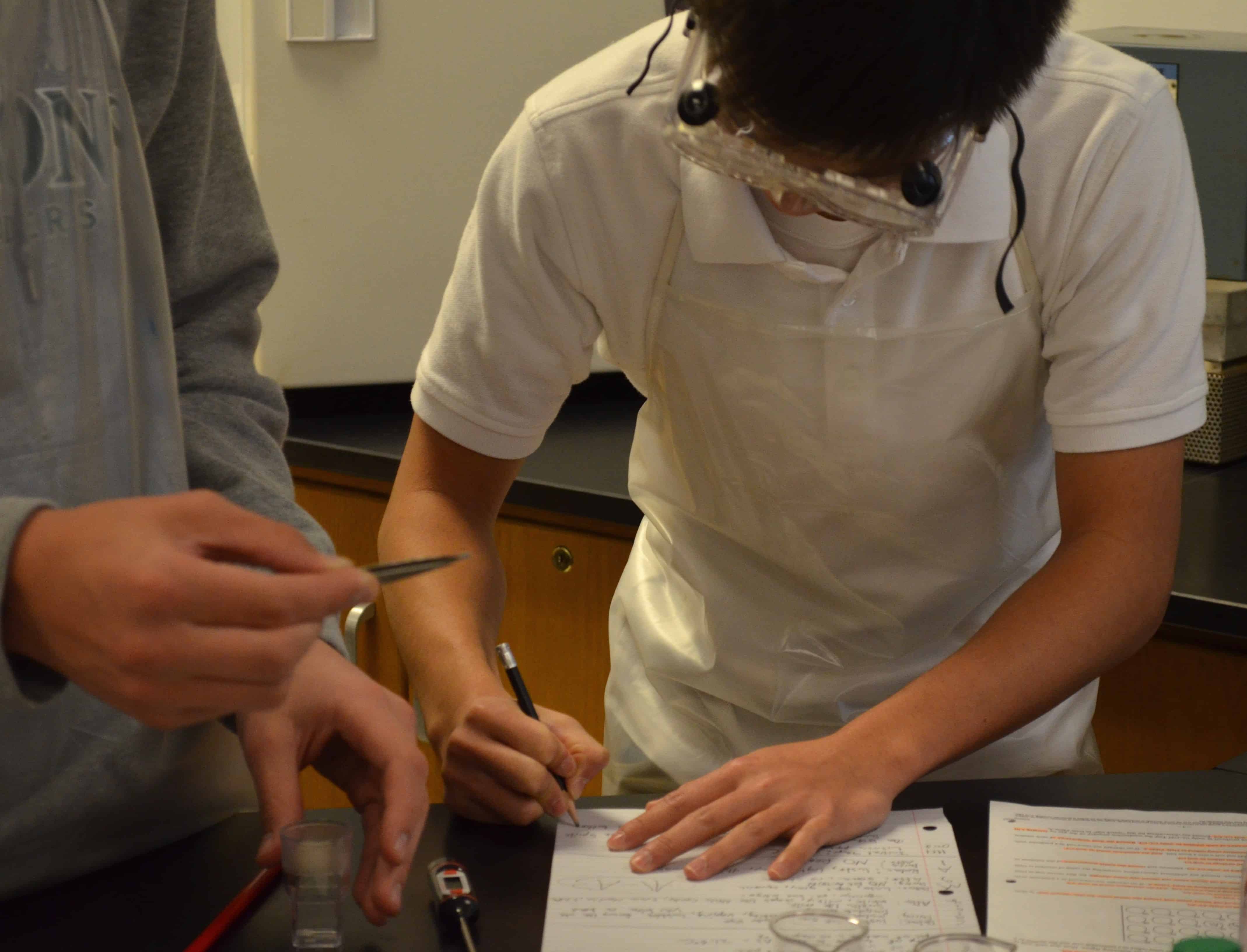 A lot of work at Gibbons is done in a group setting, with hands-on activities. I got to sit in on a chemistry class where students were conducting an experiment to see how elements on the periodic table react with various substances. Some bubbled when they interacted, others actually released smoke. The students seemed to be having a good time.
