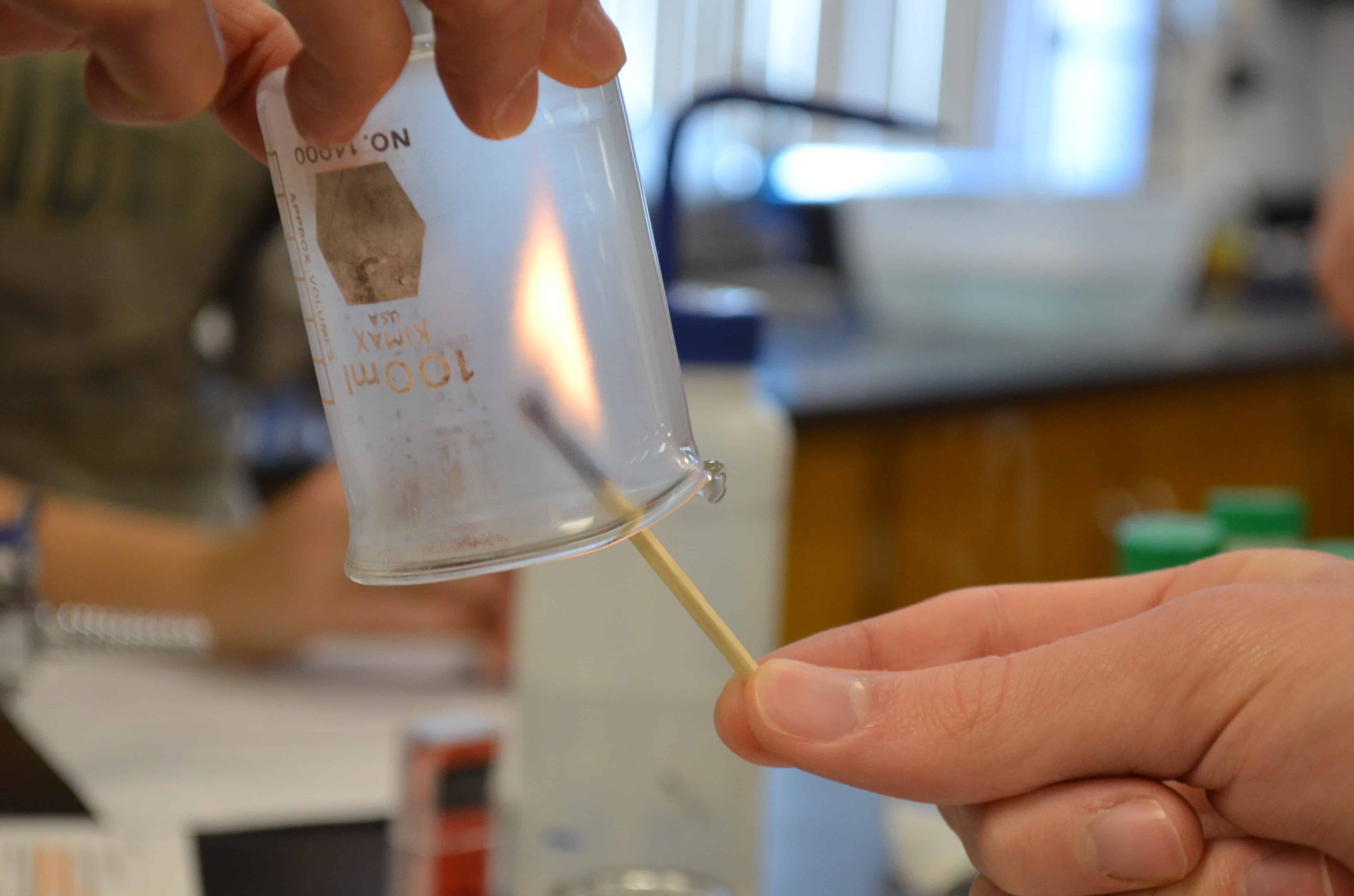 The class is chemistry honors, taught by Katie Quigley, who used to teach at her old alma mater: Wake Forest-Rolesville High School. She said public school was much more paperwork based, whereas she got into teaching so she could interact with students.