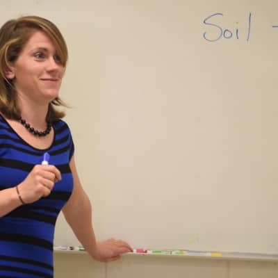 Rachel Roberts, a plant biologist with a degree from Cornell, and her husband, Chris Roberts, a fourth generation apple grower, choose to teach in the Clay County Schools.
