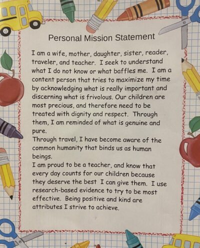 As educators begin this school year, I encourage you to reflect on and craft your own mission statement, thinking through the following questions: